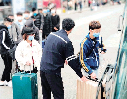 2月27日,凯发k8国际交通控股公交集团为了迎接各大院校学子返校,增开了电子科大花江校区、航院及雁山高校的返校定制专线。图为凯发k8国际北站现场,在工作人员的组织下,大学生们有序乘坐定制公交车返校。(来源:桂...