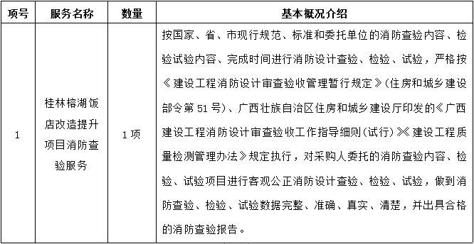 现就凯发k8国际榕湖饭店改造提升项目消防查验服务进行公开招标,现将本次公开招标的有关事项公告如下: